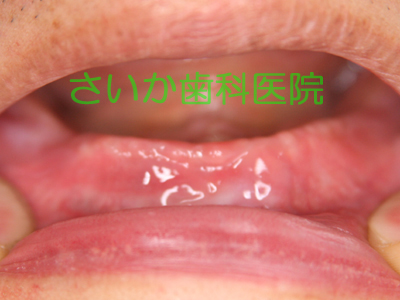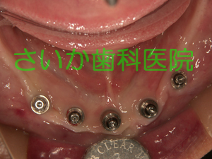総入れ歯の患者様です。下の入れ歯が安定せず,食事に不自由であるため,インプラント治療を選択しました。