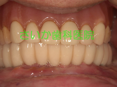 半年経過してから最終的な歯を作りました。処置終了してまだ3年ほどですが順調に経過しています。
